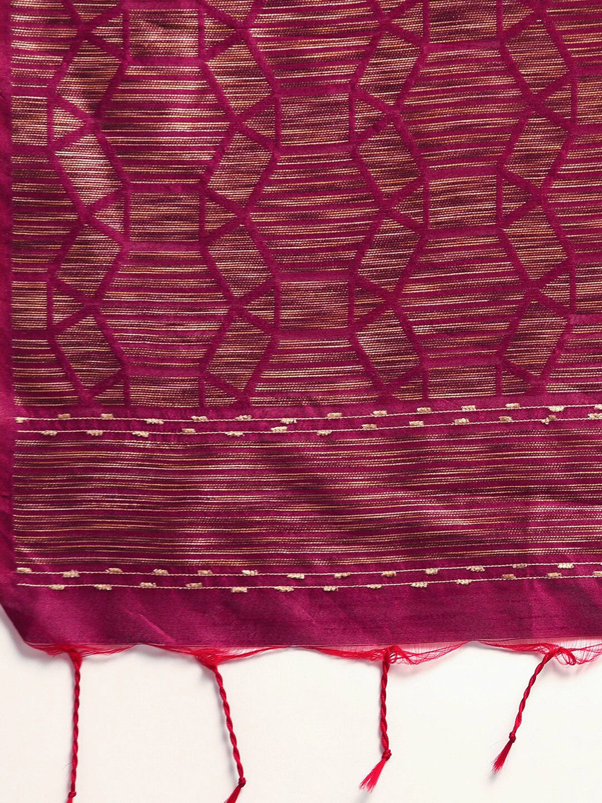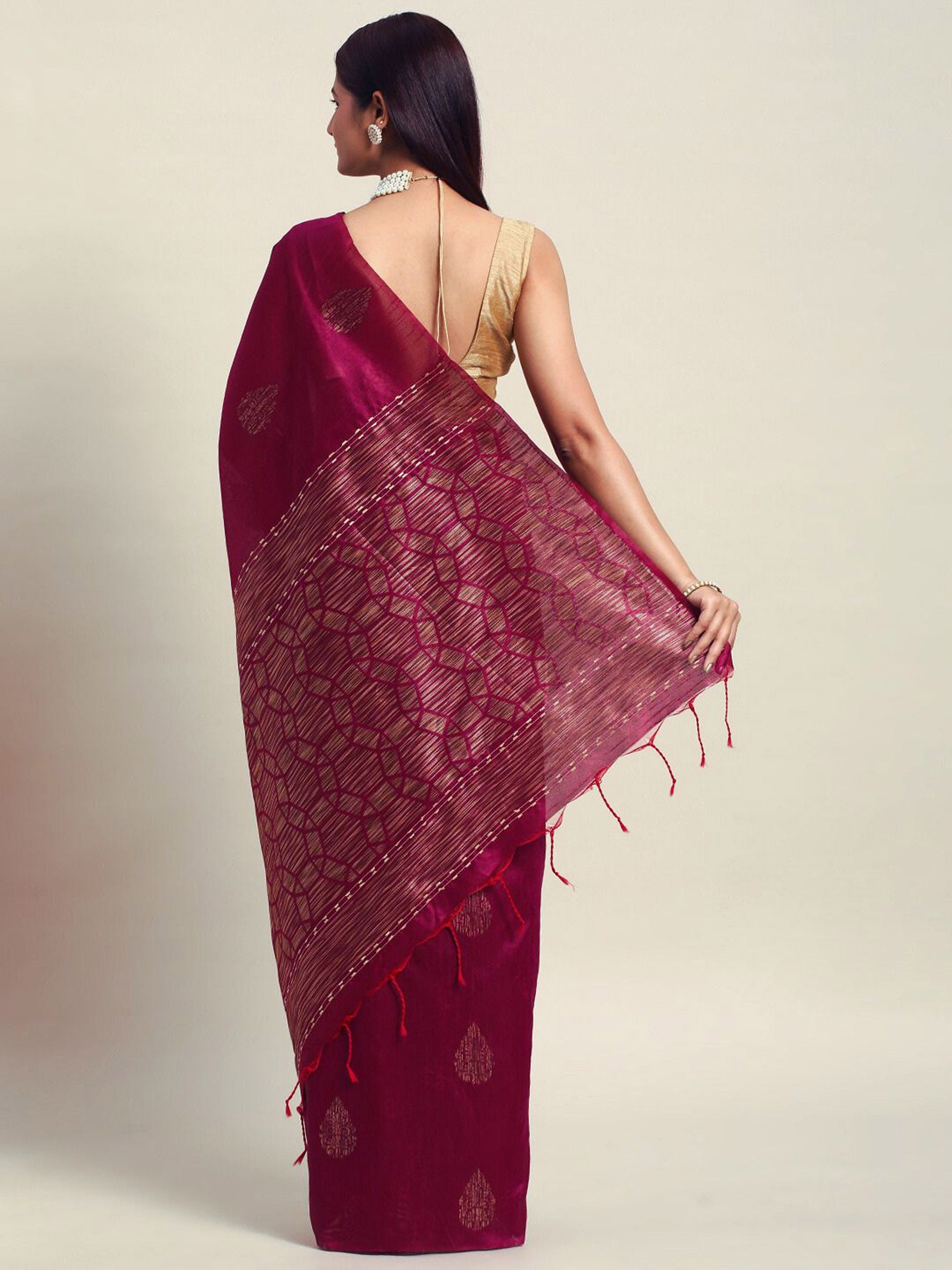 Wine Handloom Ghicha Raw Silk Butti woven saree
