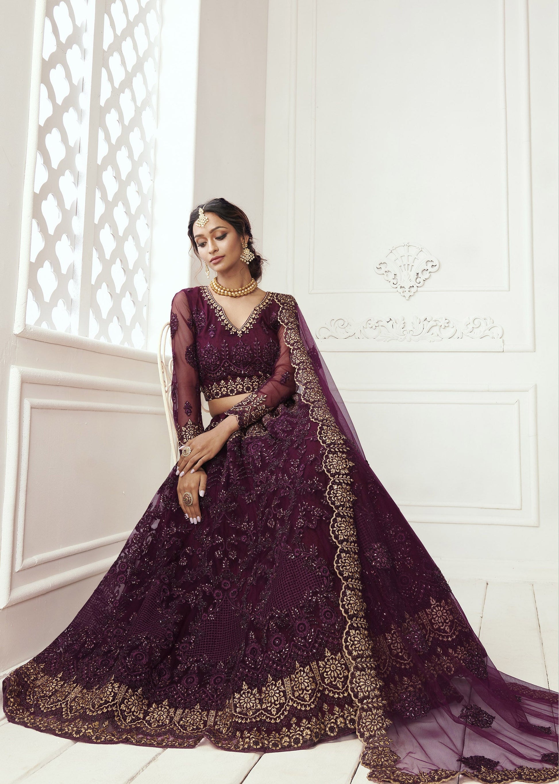 - Lehenga Choli Color: Wine