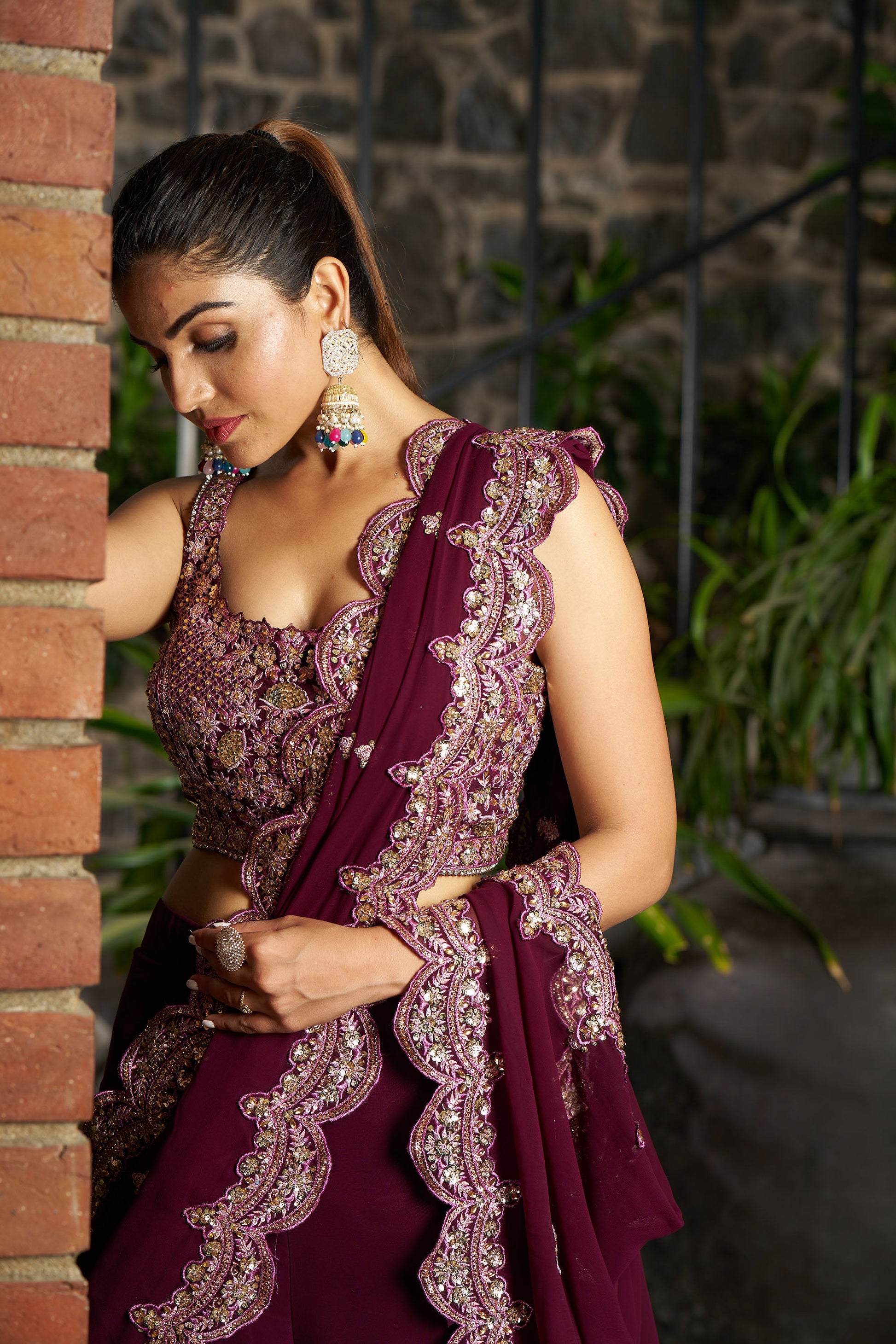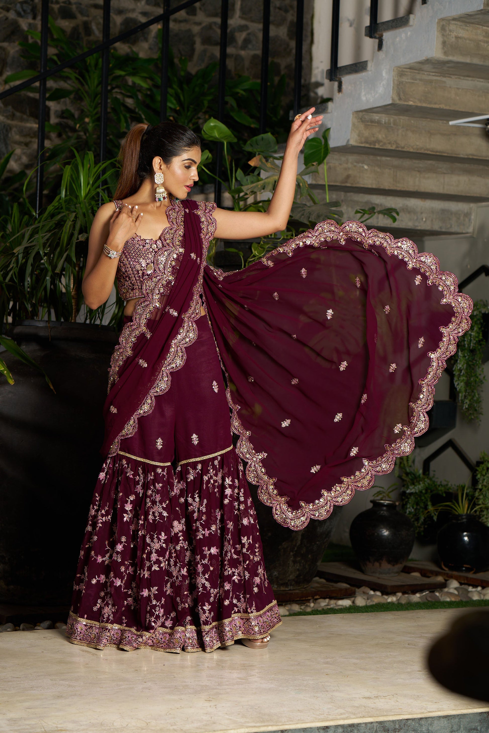 Wine Indo Western Eid Saree