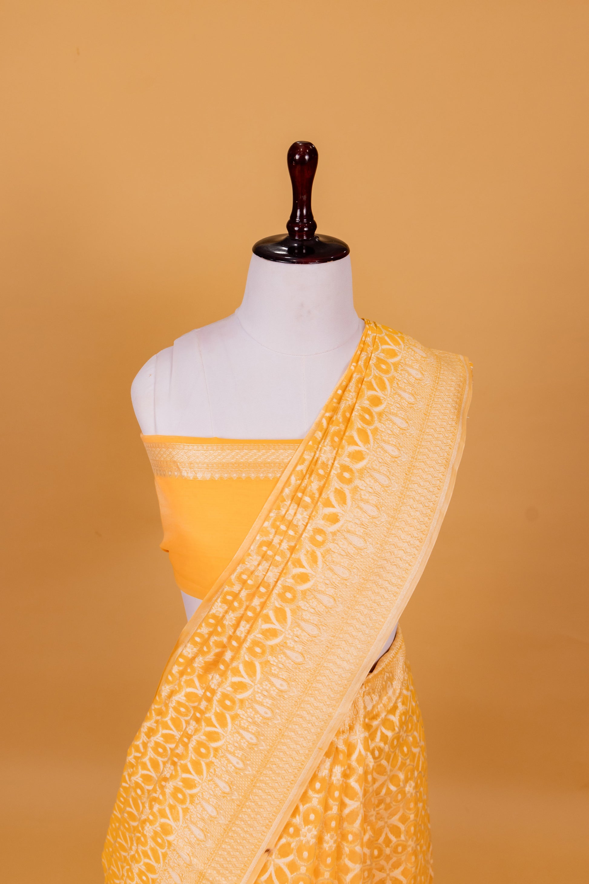 Yellow Banarasi Cotton Cutwork Saree