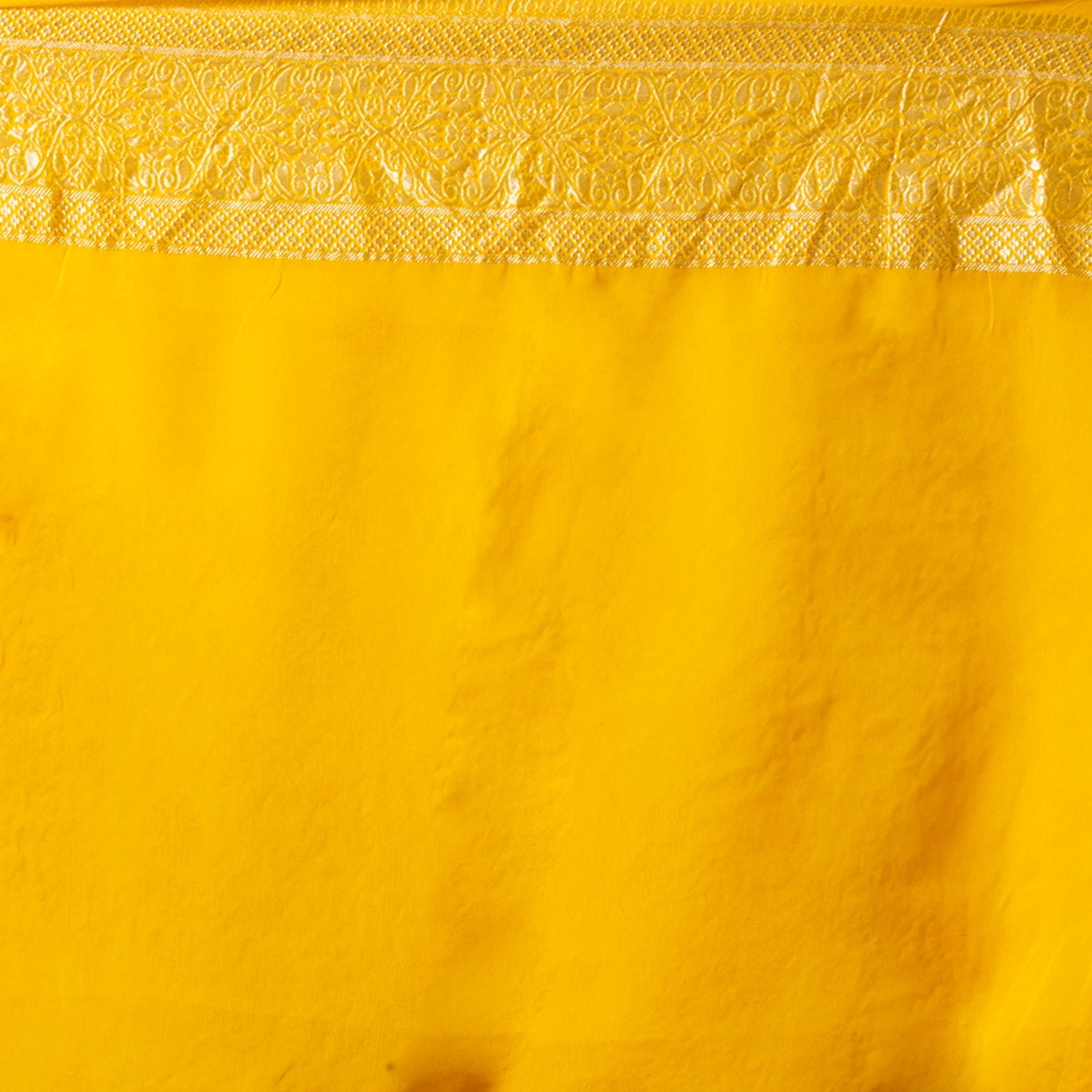 The Yellow Georgette Khaddi Pure Silk Saree is an embodiment of timeless elegance and the exquisite craftsmanship of handloom Banarasi weavers. Whether for special occasions or to pay homage to the rich legacy of Indian textiles, this saree is a perfect choice, blending tradition and sustainable fashion in one stunning piece.