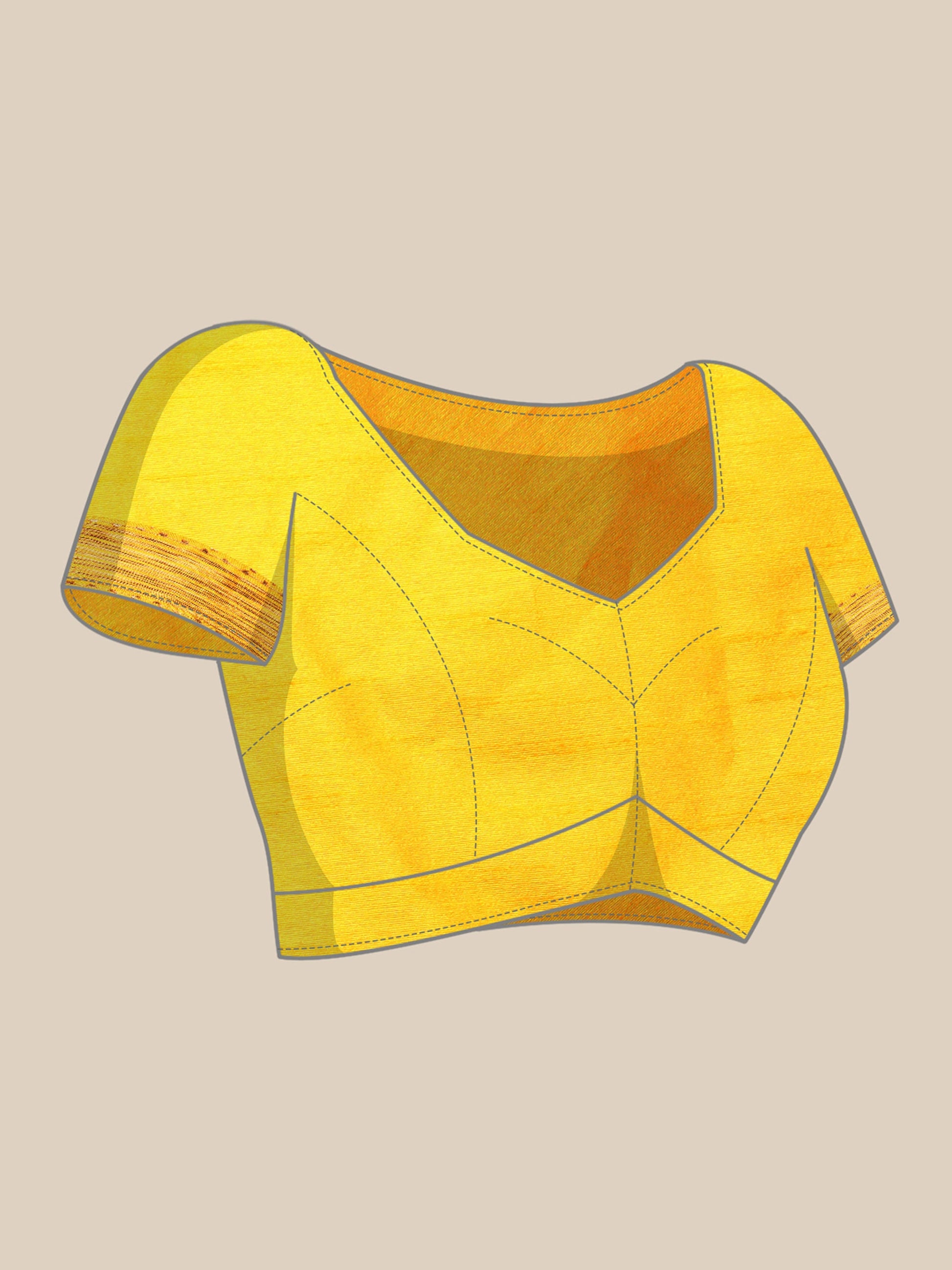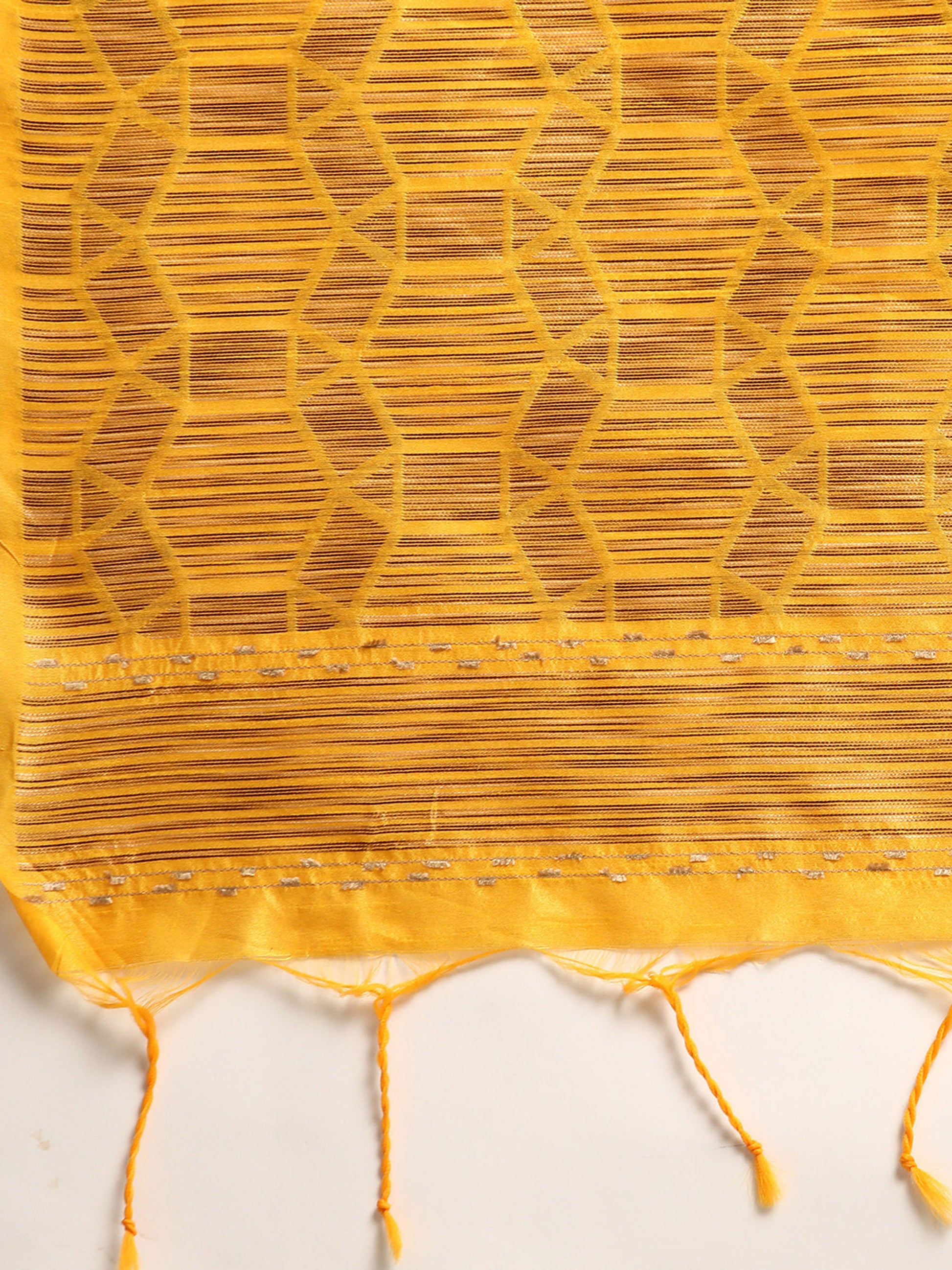 Yellow Handloom Ghicha Raw Silk Butti woven saree