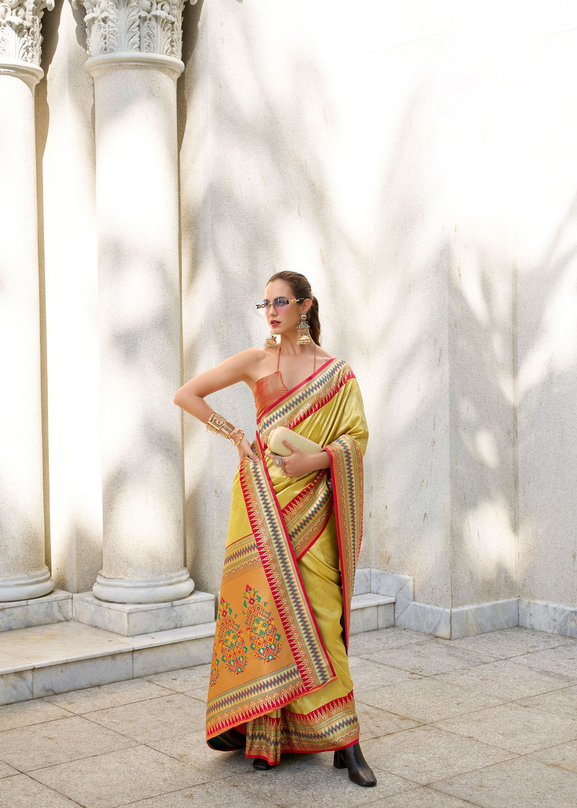 Yellow Rajmata Tissue Silk Saree with Zari weaving