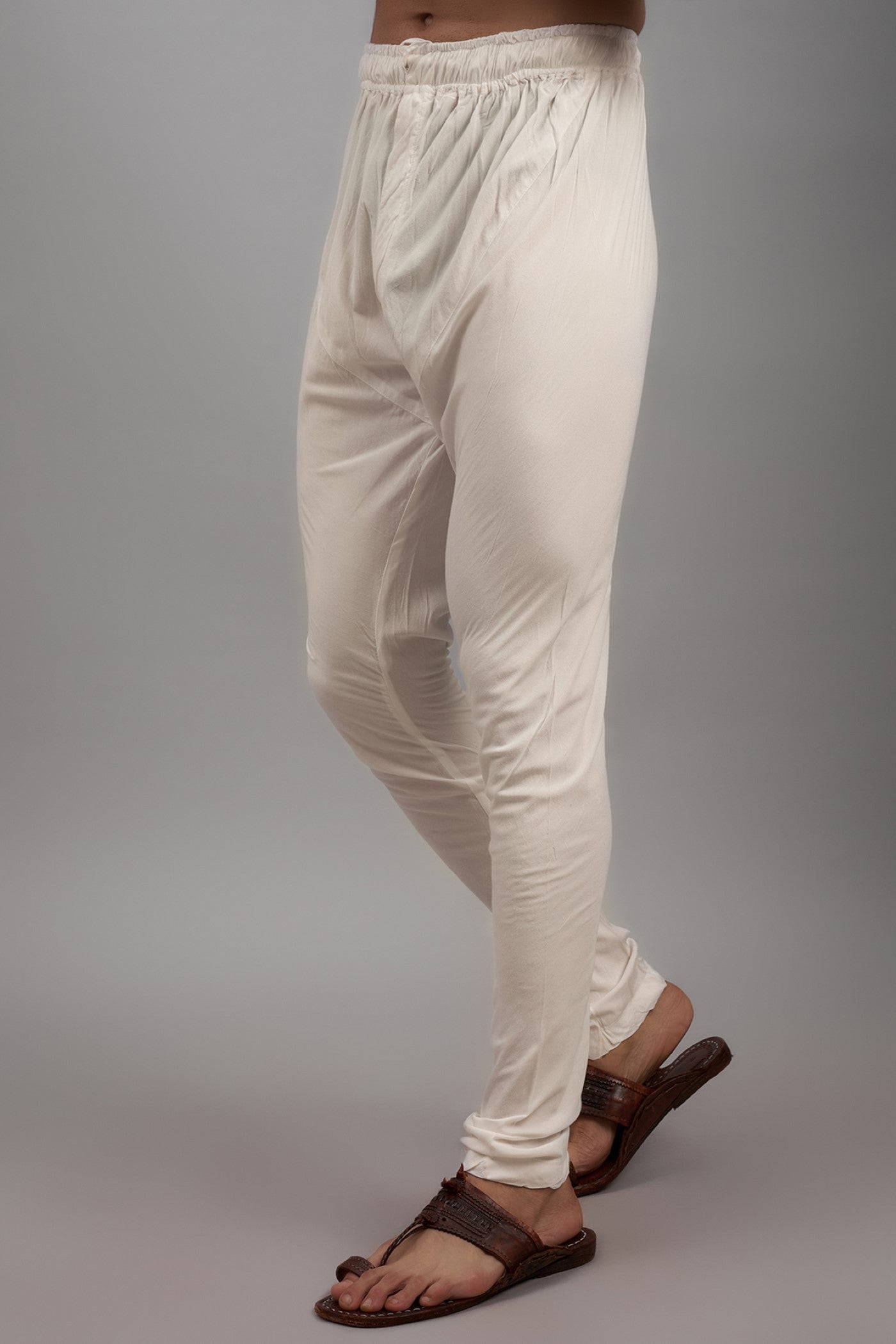 Featuring a yellow kurta in silk base with resham, thread, and mirror work. It is paired with contrasting churidar pants.