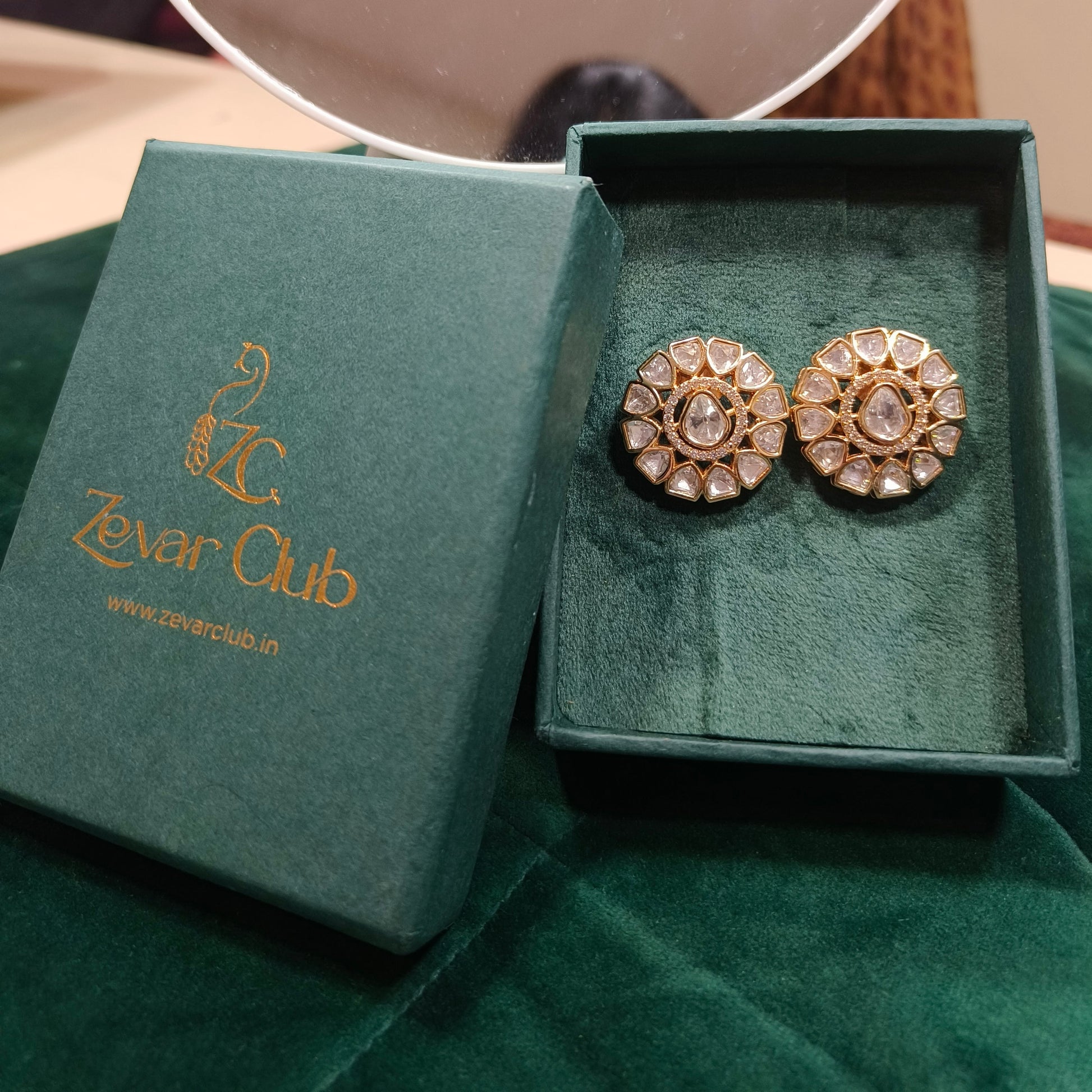Zevar Club 22K Gold-Plated Uncut Flower Kundan Pendant Set