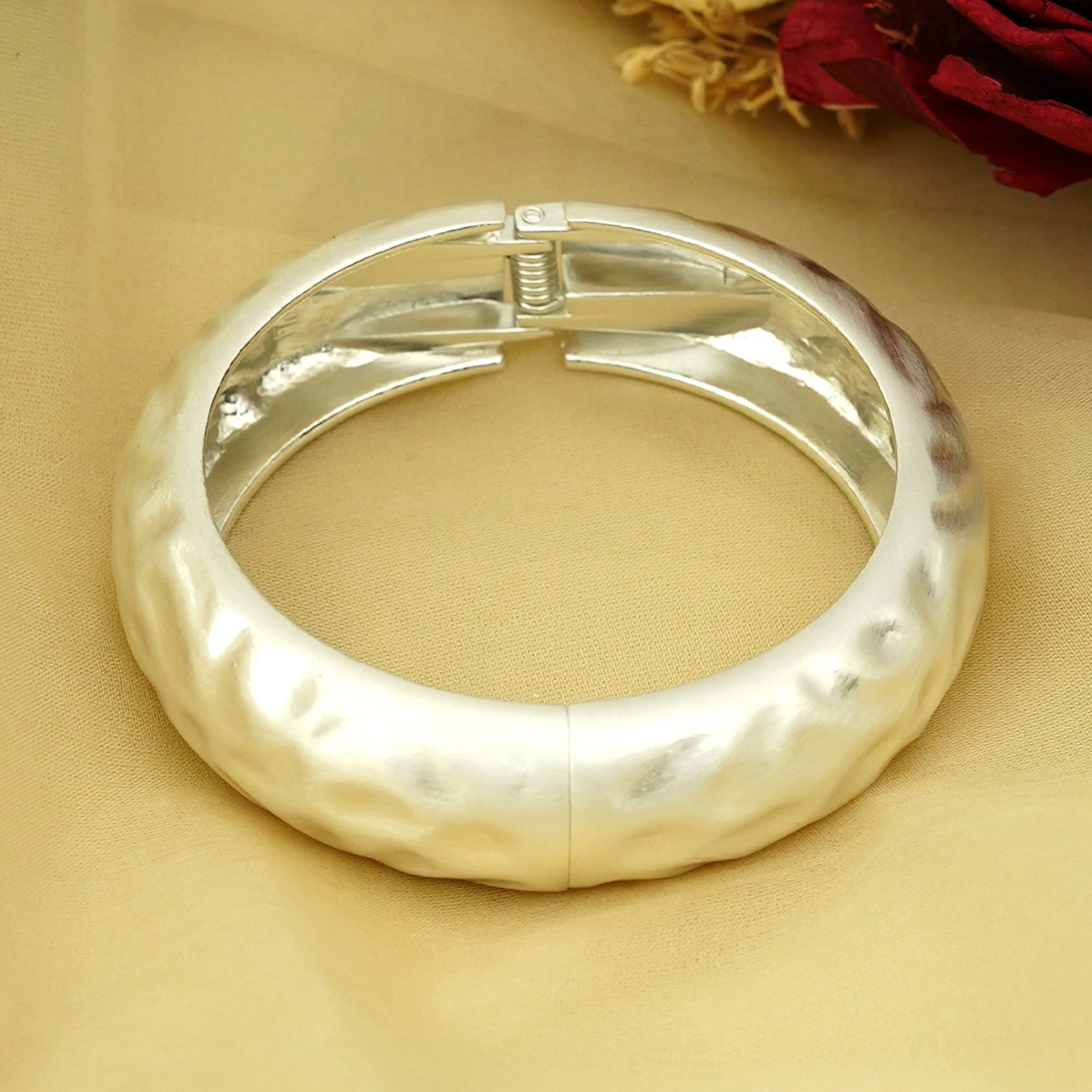 Zevar Club Bold Silver Tone Stainless Steel Tarnish Free Waterproof Hammered Texture Openable Statement Bracelet for Women