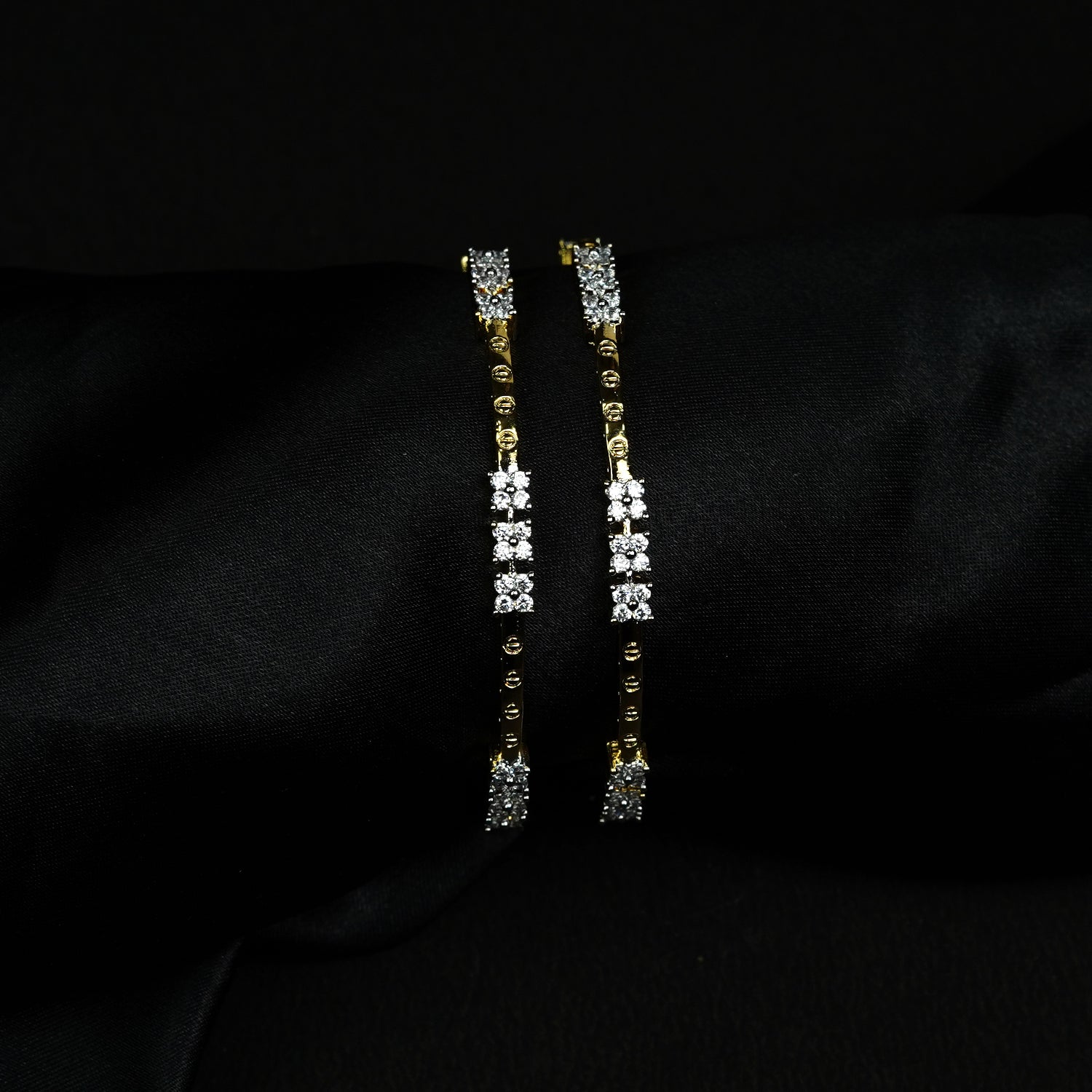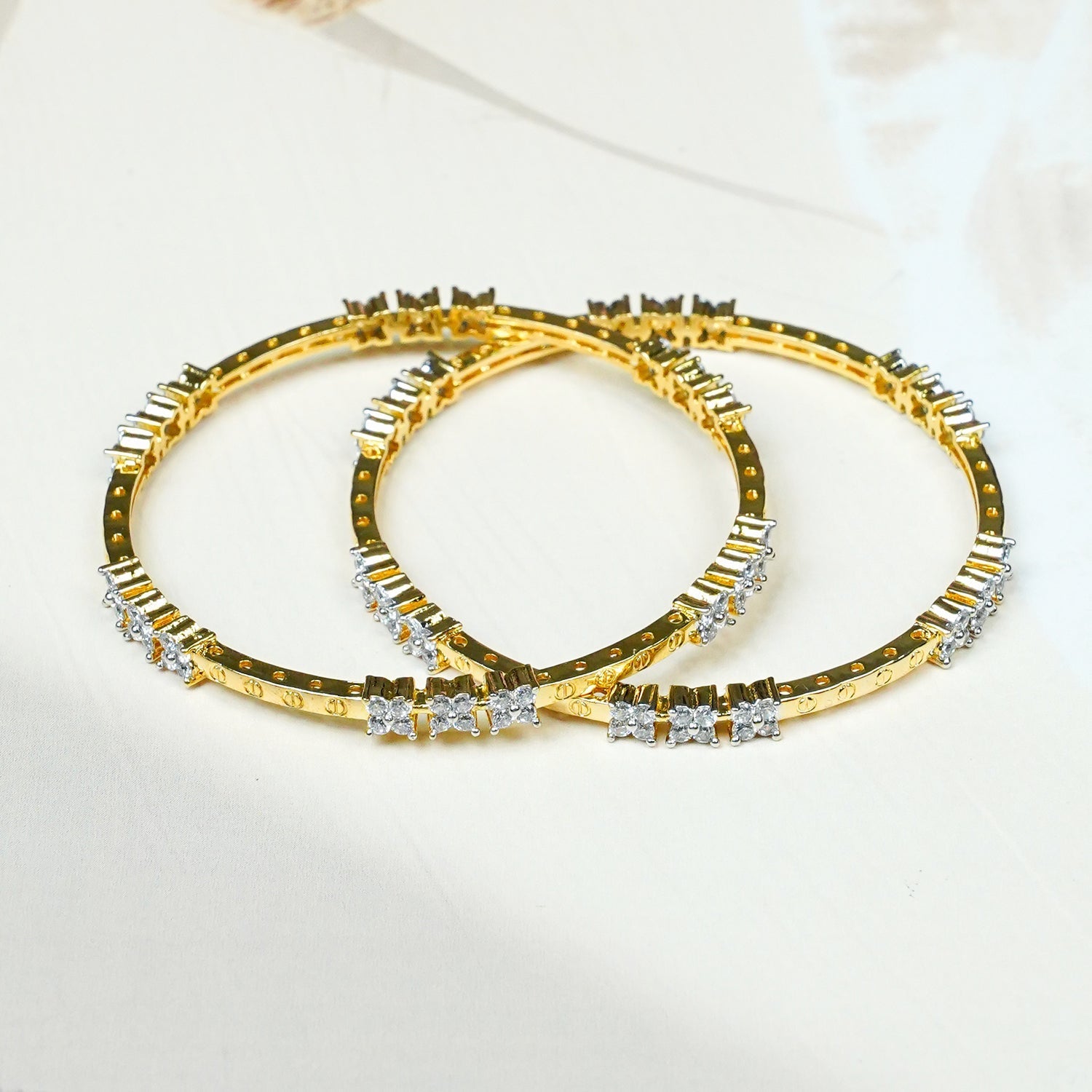 Zevar Club Set of 2 22K Gold-Plated Handcrafted AAA Cubic Zirconia Floral Cluster Premium Bangles