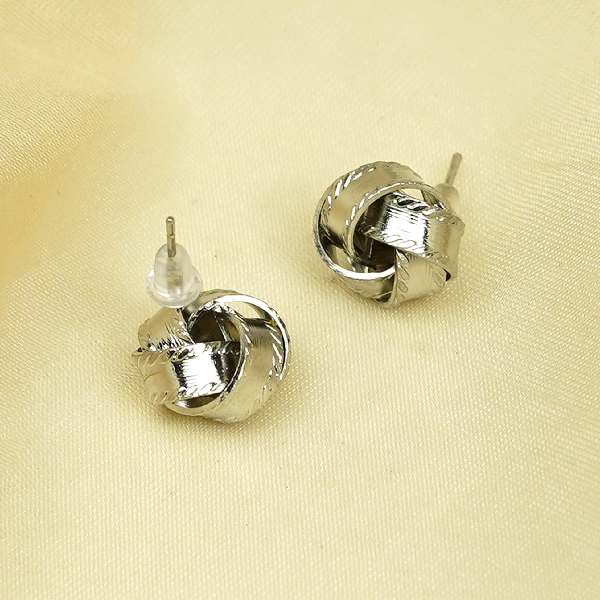 Zevar Club Silver Tone Twisted Knot Stud Earrings for Women