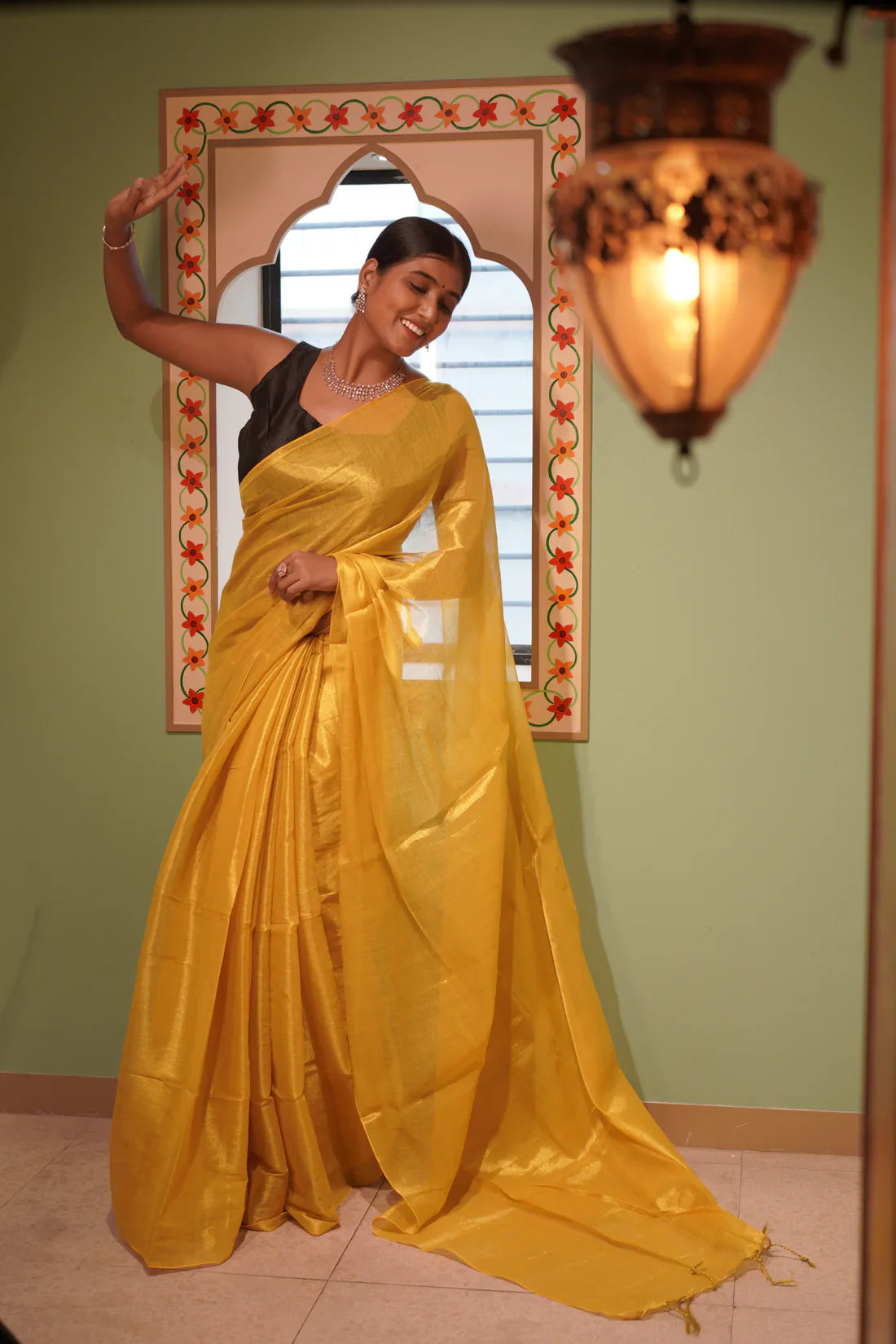Zinnia Yellow Mul Tissue Handloom saree